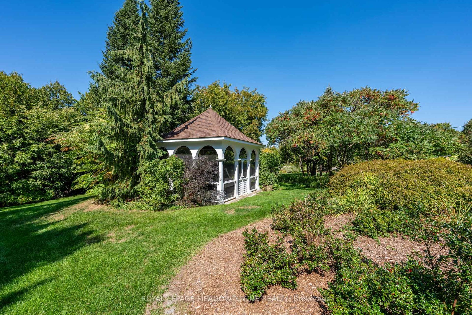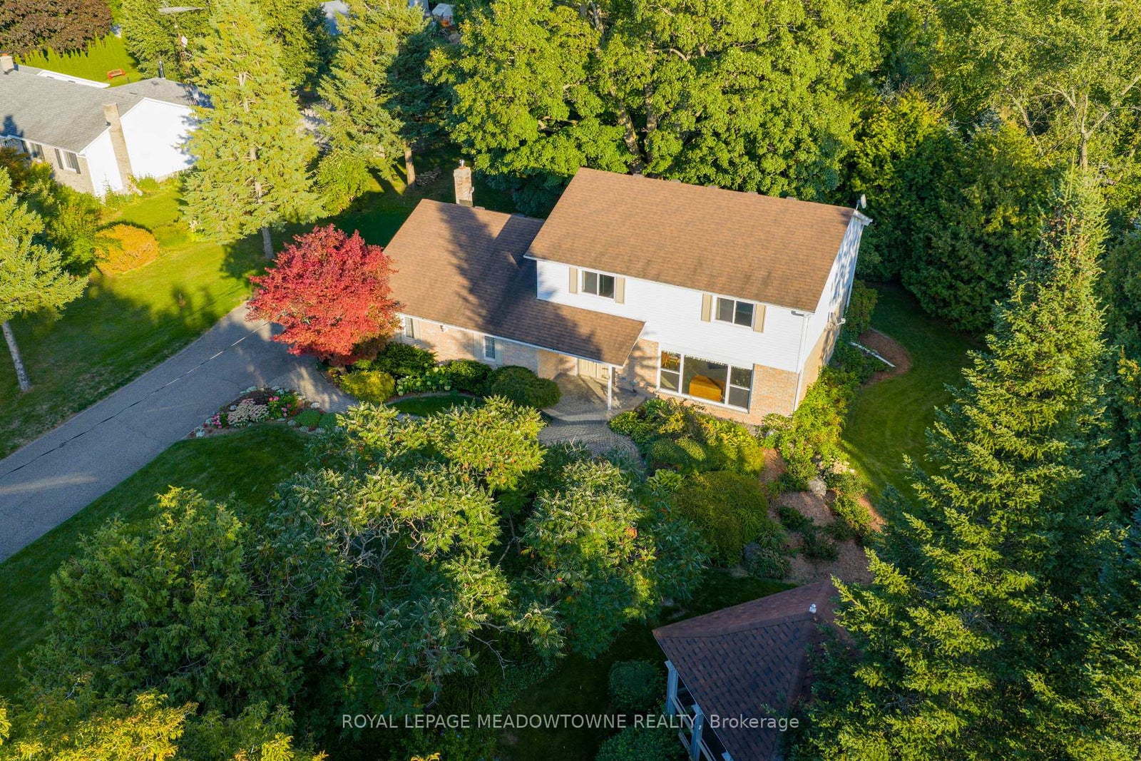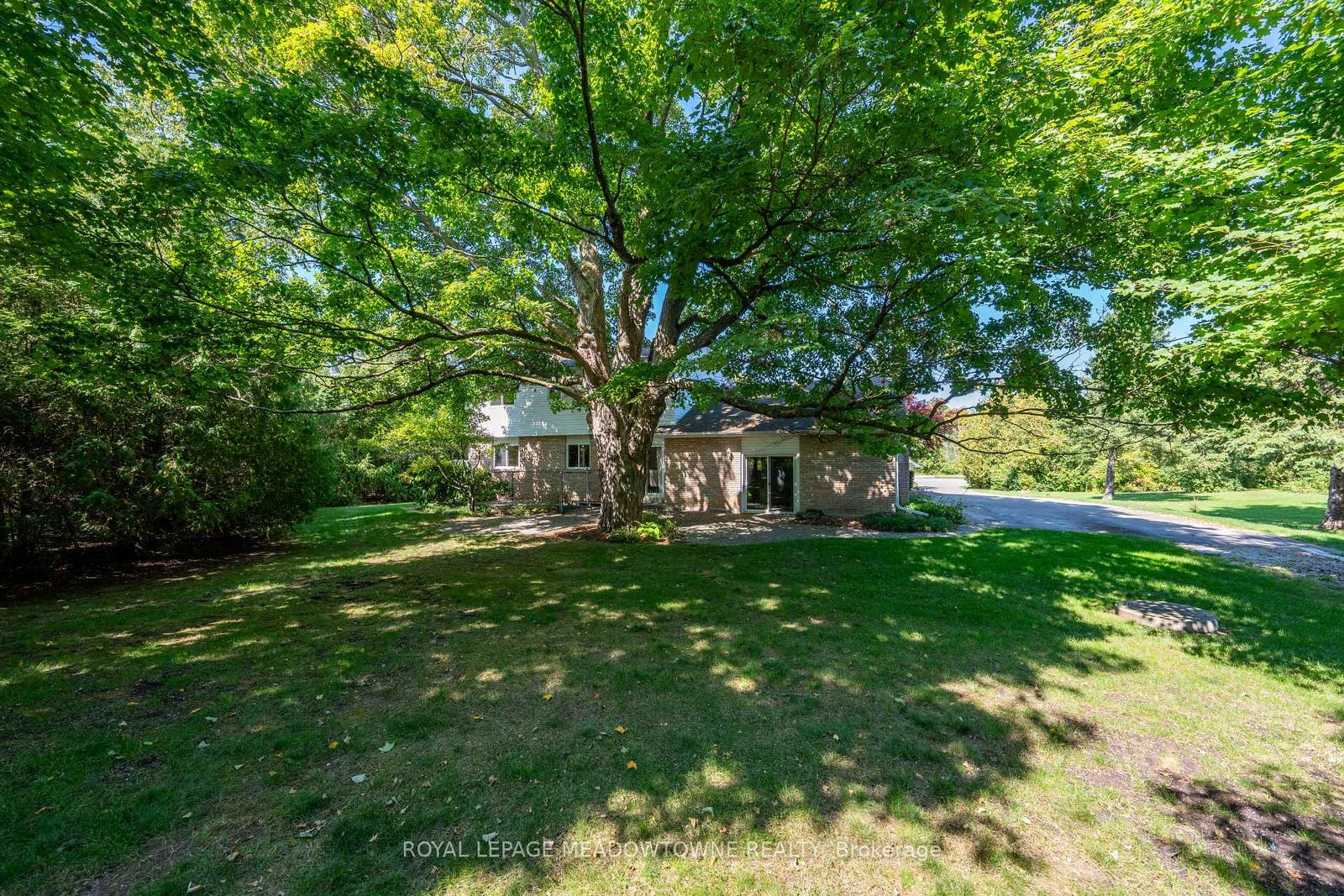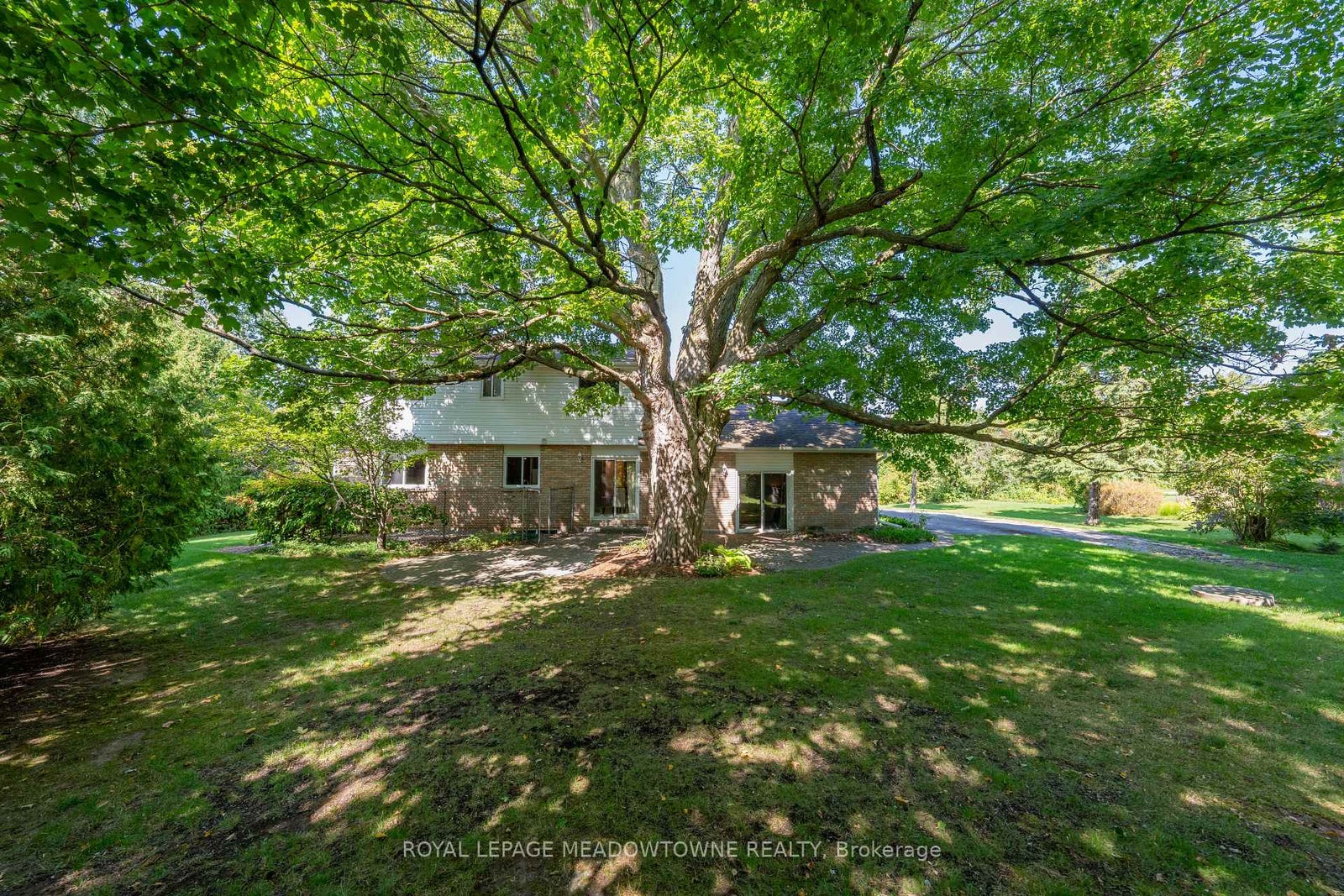 Nestled on a quiet cul-de-sac, this beautifully landscaped 1+ acre property offers peaceful country charm with the convenience of nearby town amenities. A custom enclosed gazebo sets the stage for effortless seasonal entertaining, while a charming stone walkway welcomes you to this well-maintained 4 bedroom, 3 bathroom home.Inside, spacious principal rooms are filled with natural light from oversized windows, showcasing picturesque views of the surrounding mature landscape. The large eat-in kitchen features a walkout and flows seamlessly down to the inviting family room, complete with a fireplace and an additional walkout to a stone patio overlooking the serene, tree-lined grounds.Designed with both comfort and functionality in mind, the home also offers a formal living and dining room-ideal for hosting family gatherings and special occasions. Upstairs, four generously sized bedrooms provide ample storage and beautiful views, including a primary retreat with a 4-piece ensuite.The lower level presents a blank canvas, ready to be customized to suit your family's evolving needs. Additional highlights include an energy-efficient Carrier heat pump system (2024), a 2-car garage with interior access, and convenient main floor laundry.Ideally located just 20 minutes to the 401 and only 10 minutes to Acton, Georgetown, or Erin, this home offers a rare blend of privacy, accessibility, and room to grow. Updates: Heat Pump System (2024), Roof Shingles (2013)